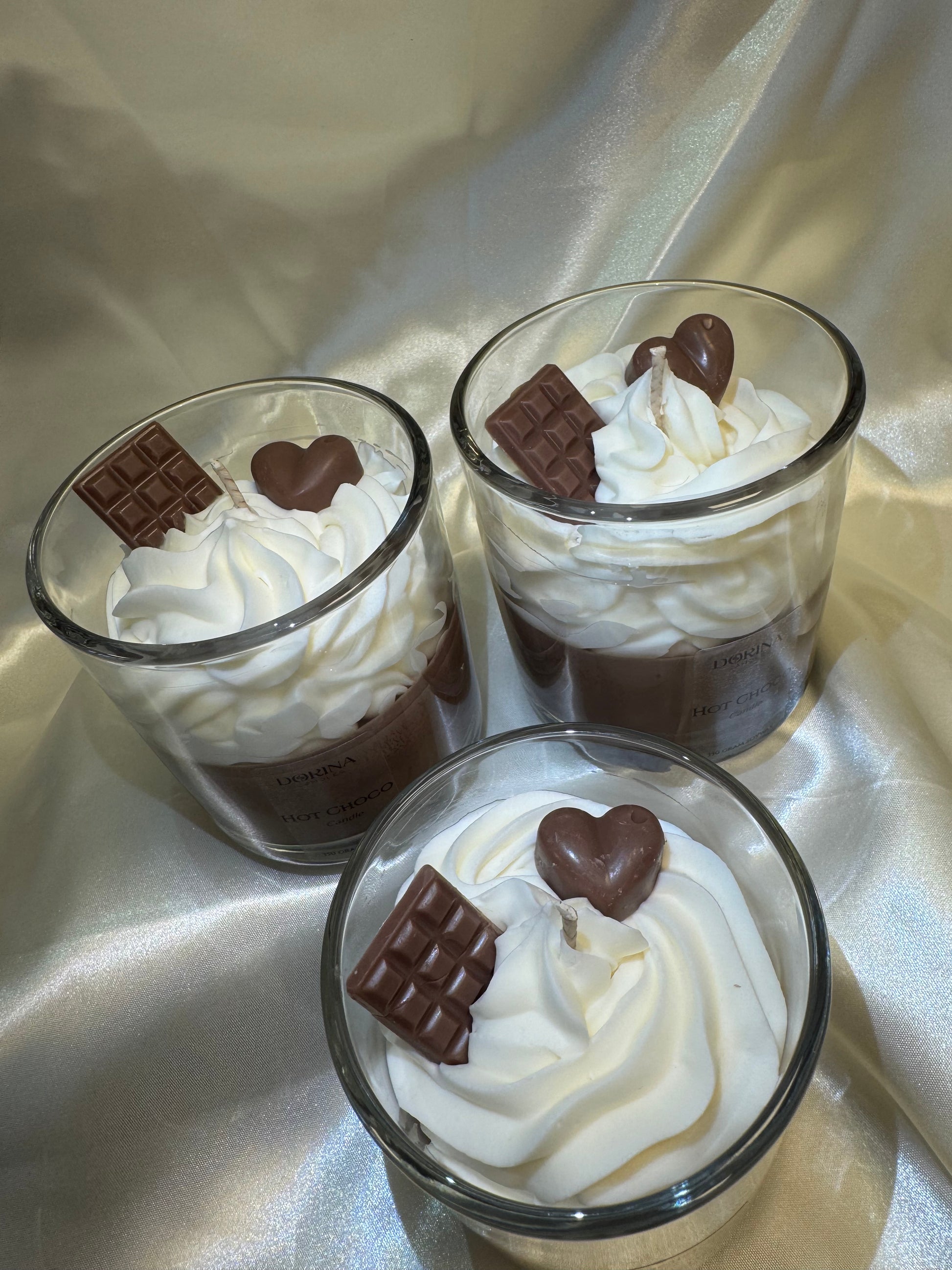 De ultieme cozy winterfavoriet! De Hot Choco kaars is met de hand gegoten uit 100% natuurlijke sojawax en afgewerkt met een luchtige “slagroomtopping” en waxdecoraties van chocolade en hartjes.